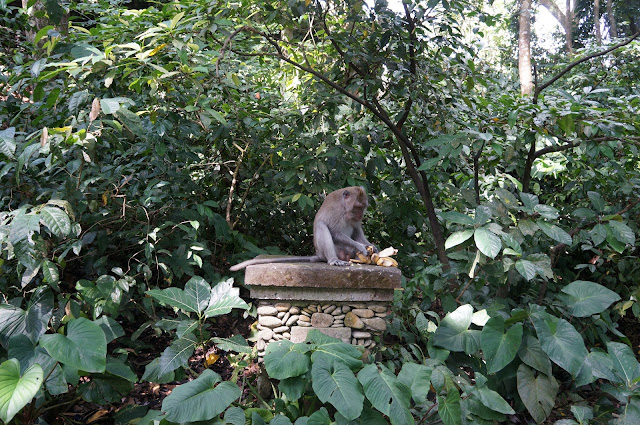 we took a small day trip to Ubud last week and of course we went to the monkey forest to feed some monkeys. Bobs had promised Bibs and she was excited about the project... and yes one of the monkeys tried to eat Bibs' foot - well not really he was trying to get hold of the banana she didn't want to let go. the thing is they can be a little bit persistent, those small creatures.